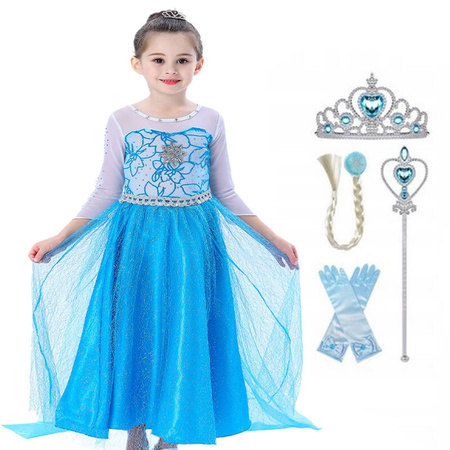 W zestawie: warkocz, diadem, suknia, rękawiczki, korona