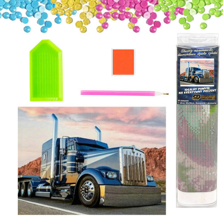 DIAMENTOWA MOZAIKA HAFT DIAMENTOWY CIĘŻARÓWKA AUTO TRUCK NIEBIESKA 30X40CM