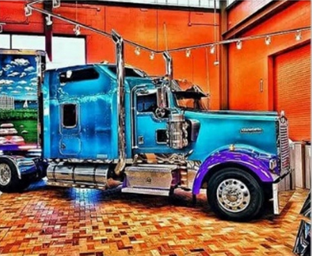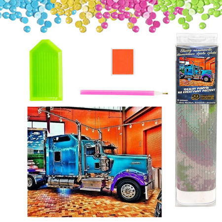 DIAMENTOWA MOZAIKA HAFT DIAMENTOWY NIEBIESKA CIĘŻARÓWKA W GARAŻU TRUCK AUTO