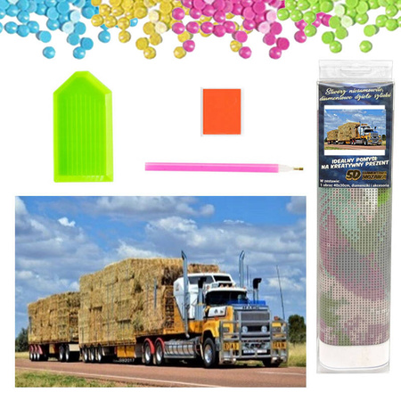 DIAMENTOWA MOZAIKA HAFT DIAMENTOWY CIĘŻARÓWKA Z SIANEM  SNOPKAMI 30X40CM