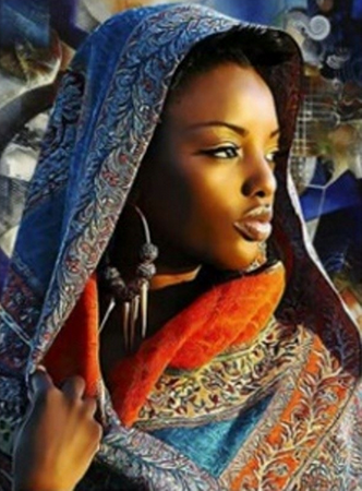 DIAMENTOWA MOZAIKA HAFT KOBIETA CZARNOSKÓRA W CHUŚCIE 30X40CM